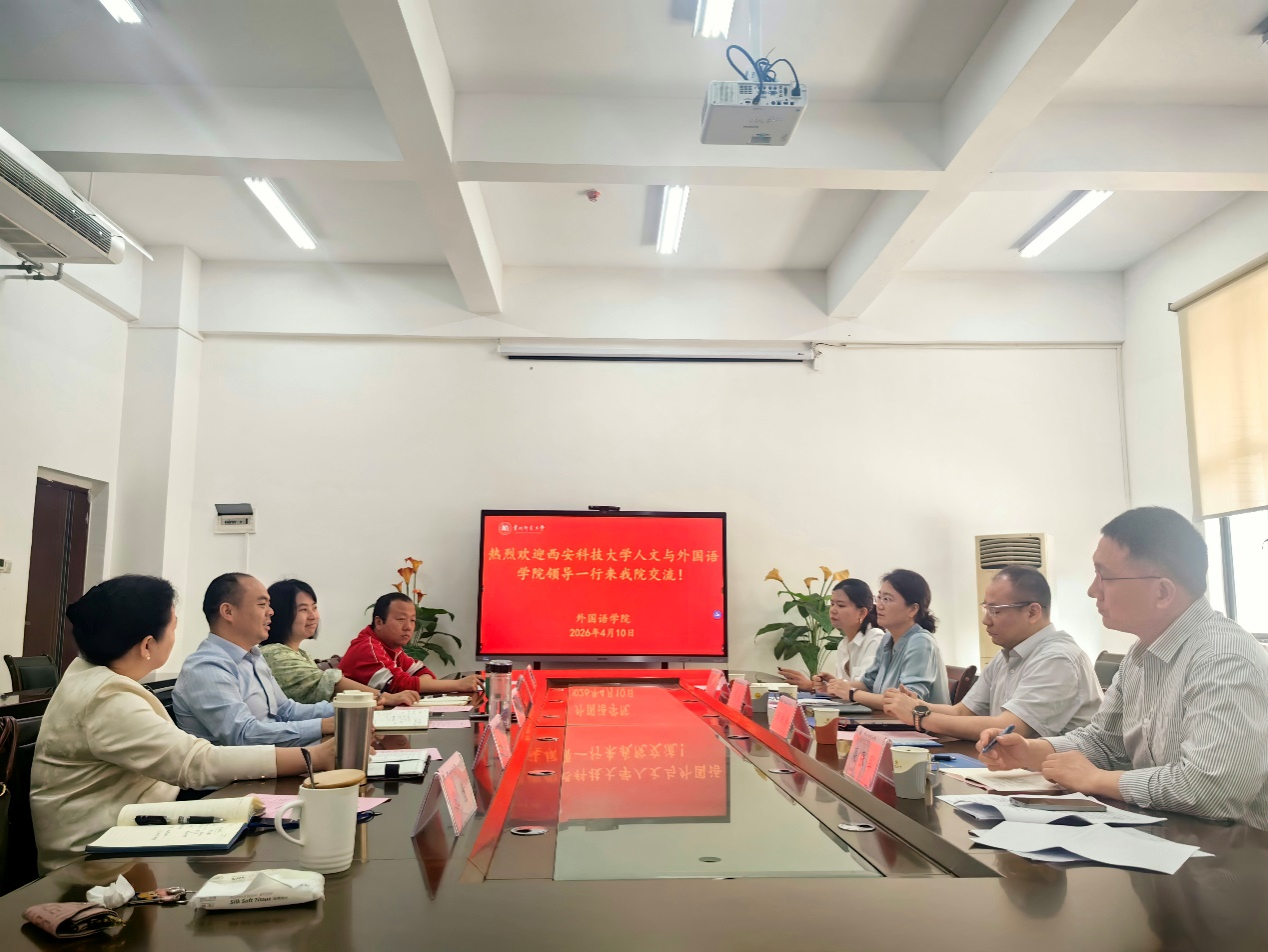 座谈中,李焱详细介绍了我院现行培养方案的课程设置思路及分层培养机制。针对跨学科课程融合中的难点,调研组重点就“外语+”跨学科课程建设经验与贵大外院进行了深入探讨,双方就外语学院与相关专业学院之间师资互聘、课程共建、学分置换及模块设计等关键环节交换了意见。同时,调研组还详细了解了贵州大学外国语学院针对学术深造与侧重就业两类不同发展意向的学生,在高阶学术研讨课与实践课方面实施的差异化设计策略。贵州大学外国语学院副院长结合本院的实际情况,分享了他们在课程体系建设方面的宝贵经验,特别是在平衡教学资源、实现差异化精准培养方面的具体做法,为我院优化人才培养方案提供了重要参考。