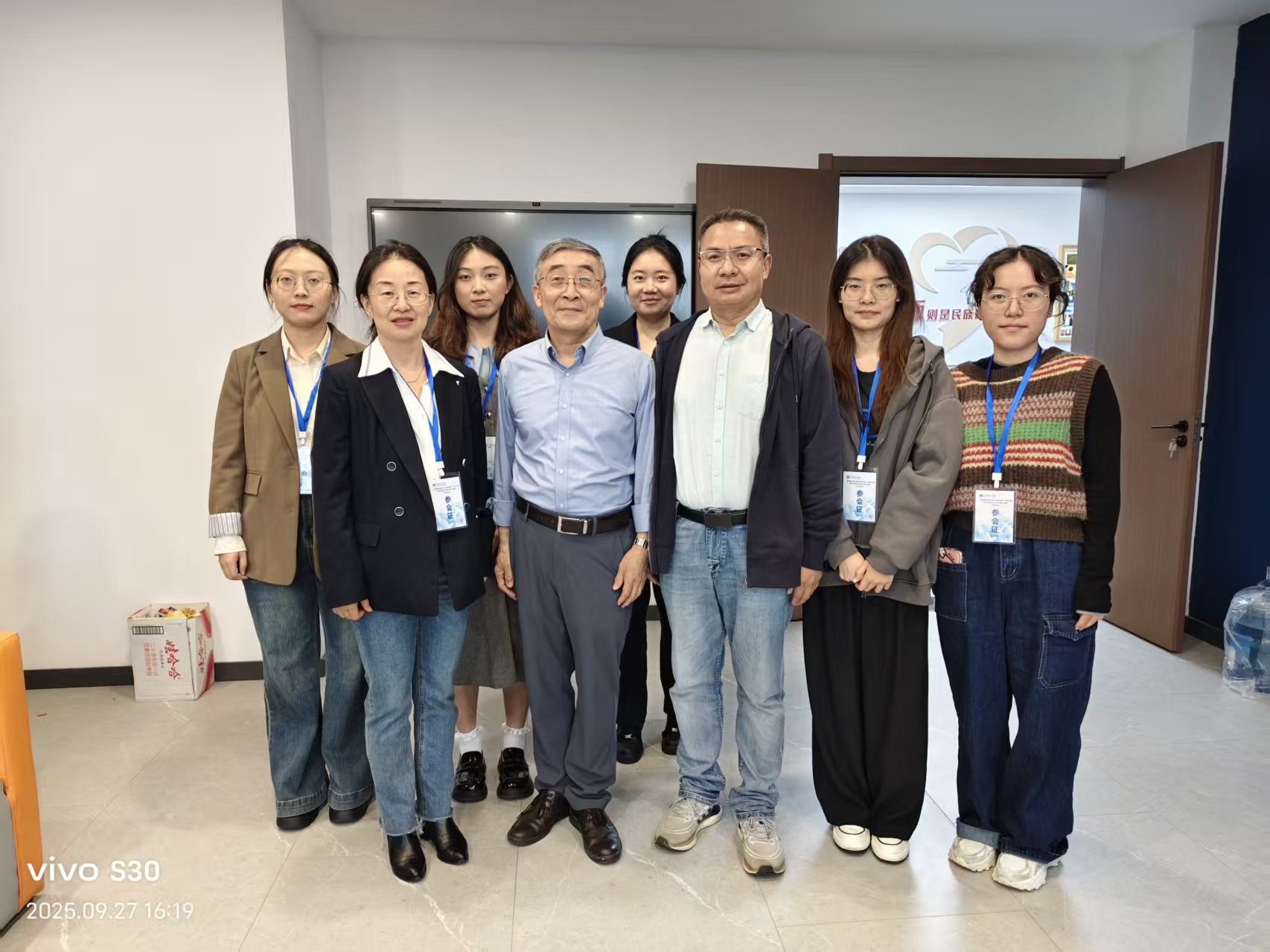 在会议茶歇期间,时健和邹虹及其研究生与陕西省语言学会会长邢向东教授(邢教授是陕西师范大学文学院教授,教育部长江学者,主攻陕北方言研究。)进行了亲切交谈,并邀请他前往我校指导工作和讲座交流。