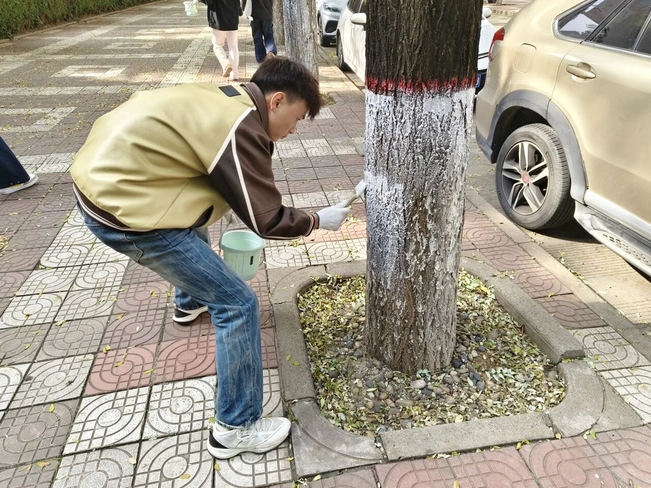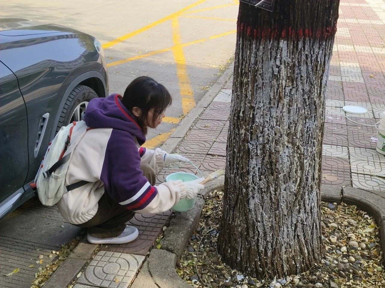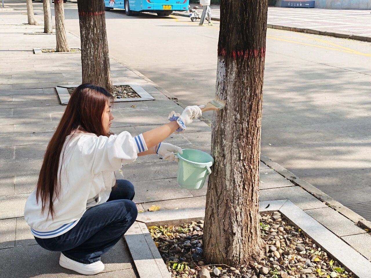 活动中,负责人细致讲解了涂白要领与操作规范,并分发工具和涂料。受助学生全神贯注、默契配合,以专注和汗水为冬日校园绘就一道坚实的“保护屏障”,在实践实干中诠释劳动意义。