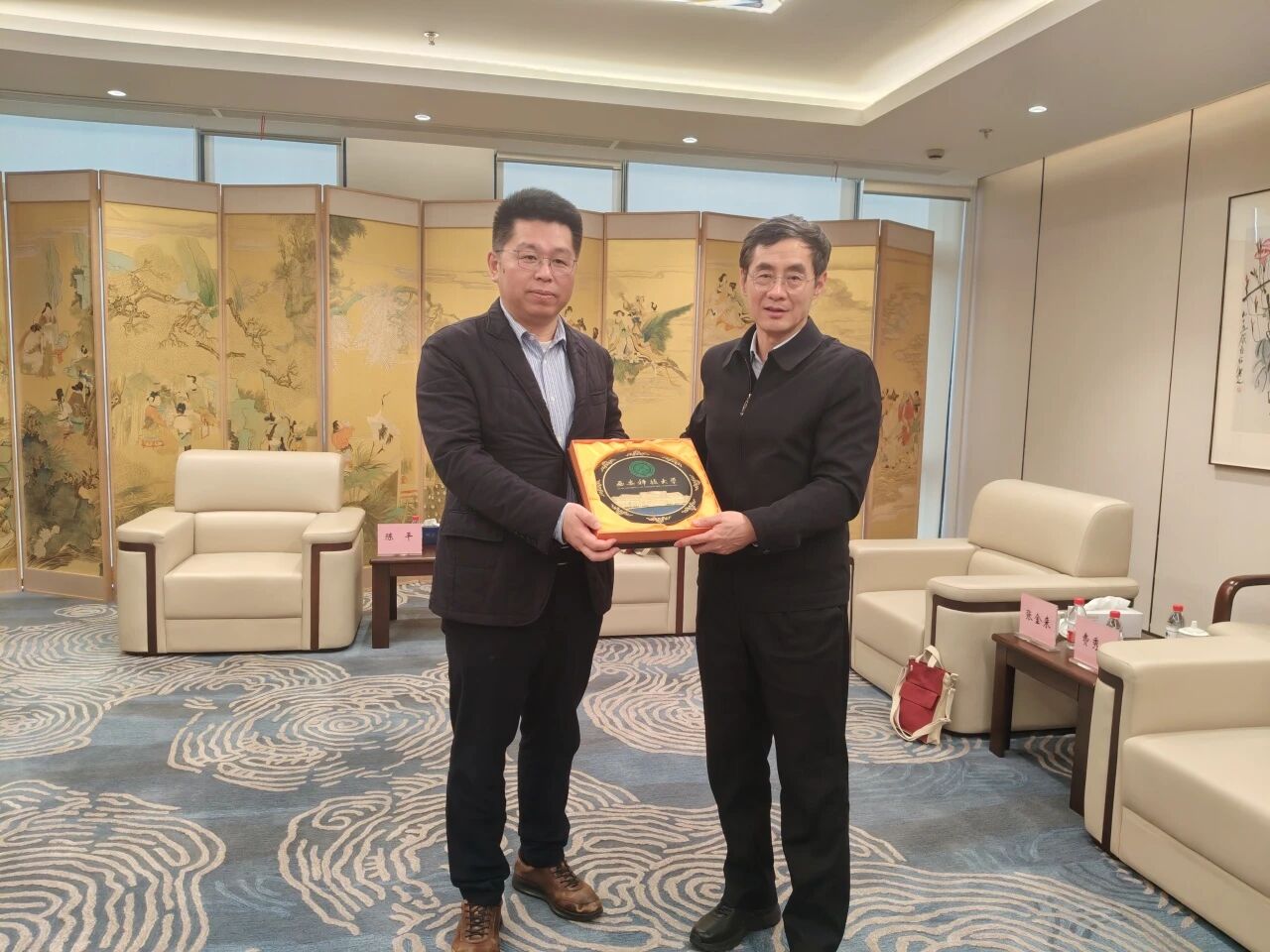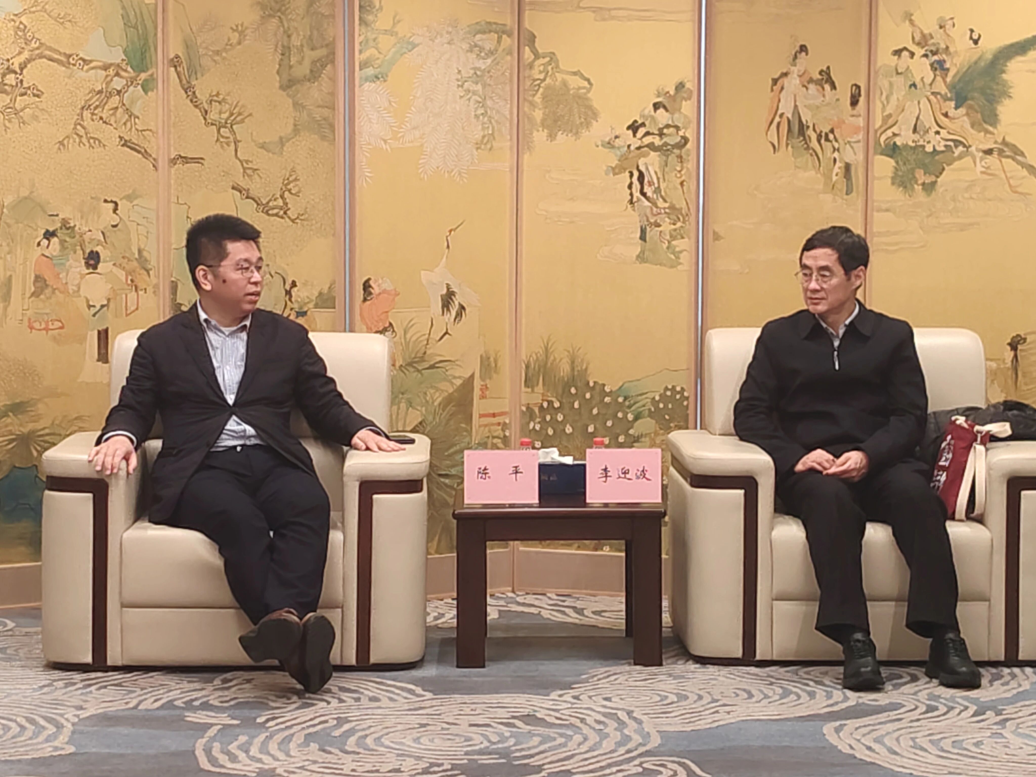 上海华测导航技术股份有限公司副总裁沈礼伟、中国地区部副总经理吴省伟,上海世纪出版(集团)有限公司党委副书记、我校校友陈平,上海沛联信息科技有限公司负责人王婷会见了代表团一行。