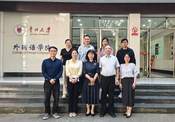 同日,调研组一行前往贵州大学外国语学院,双方围绕“特色化人才培养与课程体系” 核心议题展开深入交流。座谈中,李焱详细介绍了我院现行培养方案的课程设置思路及分层培养机制。针对跨学科课程融合中的难点,调研组重点就“外语+”跨学科课程建设经验与贵大外院进行了深入探讨,双方就外语学院与相关专业学院之间师资互聘、课程共建、学分置换及模块设计等关键环节交换了意见。同时,调研组还详细了解了贵州大学外国语学院针对学术深造与侧重就业两类不同发展意向的学生,在高阶学术研讨课与实践课方面实施的差异化设计策略。贵州大学外国语学院副院长结合本院的实际情况,分享了他们在课程体系建设方面的宝贵经验,特别是在平衡教学资源、实现差异化精准培养方面的具体做法,为我院优化人才培养方案提供了重要参考。